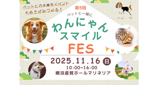 犬猫の殺処分減に貢献!ペットと共に参加できる日本最大級のペット向け最新商品・サービス体験イベント「わんにゃんスマイルフェス2025・秋in横浜」