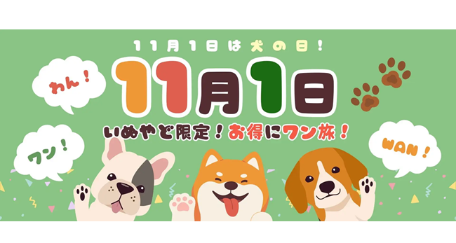 ペットと泊まれる宿の予約サイト「いぬやど-inuyado-」11月限定の「犬の日(わんわんわんの日)」特別キャンペーンスタート~割引・特典・愛犬と一緒に楽しめる体験プランをご提供~