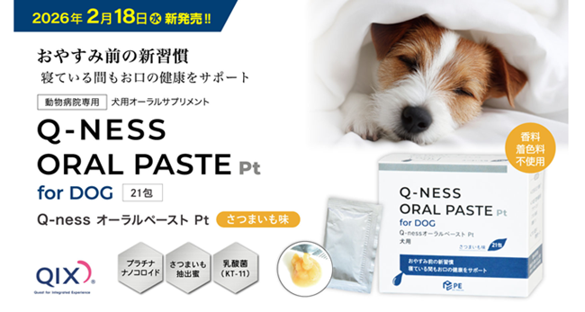 おやすみ前の新習慣で、愛犬のお口の健康をサポート! 犬用オーラルサプリメント『Q-nessオーラルペーストPt』新発売