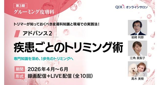 【動物病院トリマー対象 QIXオンラインサロン】 トリマーが知っておくべき皮膚科現場での実践法! 【第3期】グルーミング皮膚科 アドバンス2 「疾患ごとのトリミング術」開催