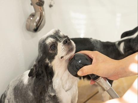 シャンプー後、切り替え弁の操作だけでNanoPetのナノバブルシャワーに切り替えることができます。ナノバブルを用いることで、通常の水道水に比べてシャンプー剤の残留を軽減し、汚れをすっきり洗い流します。さらにトリートメントの浸透をサポートして仕上がりをより美しく整えます。